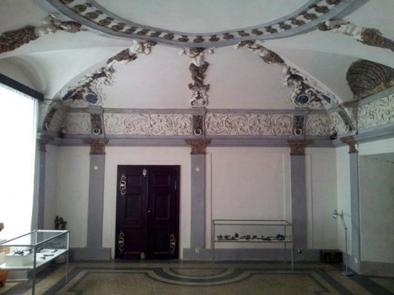První prohlídkový okruh se zaměřuje na Kapli Sv. Romedia a zámeckou expozici, ve které najdete barokní lékárnu, hudební nástroje, jídelnu s obrazárnou. Dále je možnost k vidění Salla Terrana, archeologická expozice nebo expozice zbraní. K dispozici je návštěvníkům průvodce s výkladem v českém jazyce. Při prohlídce není zakázáno po celou dobu fotografovat. Maximální počet je stanoven na 30 osob. Při méně než 4 osob není možné prohlídku s průvodcem zahájit.
